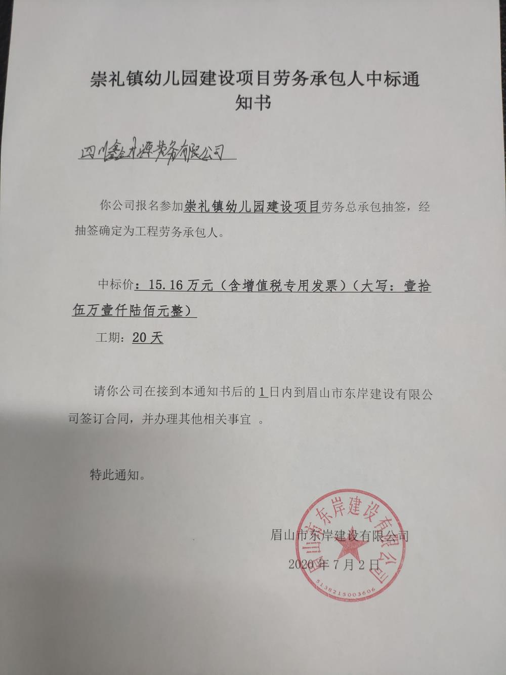 三蘇派出所辦公樓維修工程和崇禮鎮(zhèn)幼兒園建設(shè)項(xiàng)目室內(nèi)裝飾工程中標(biāo)通知